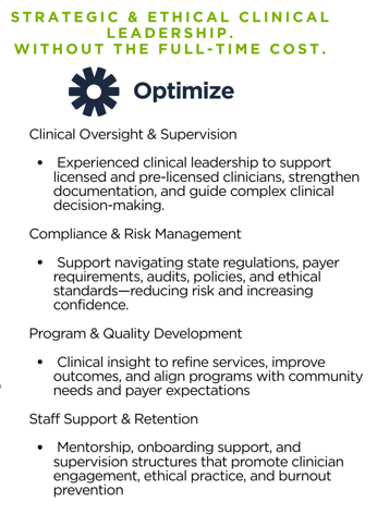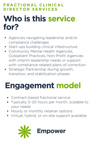 Fractional Clinical Director, Behavioral Health Operations Consultation & Strategic Partnership Support Services